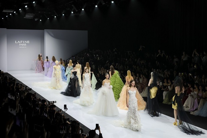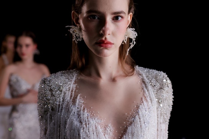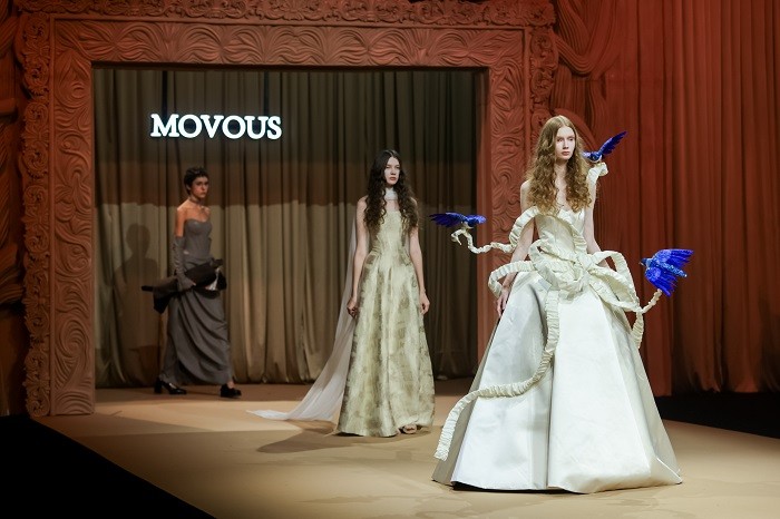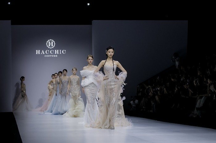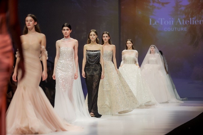 马来西亚设计师品牌IVAN YONG COUTURE以奢华剧院风为灵感走进<Met Opera>的舞台,仿佛踏入了一个梦幻的时空隧道;越南品牌HACCHIC COUTURE的<玥渊纪>系列以宇宙为布,星光为线,编织跨越光年的寰宇梦境;THIS ONE从“木质闪调香”中捕捉灵感,将迷迭香的清冽复古融进钻石的冷透光芒之中;蔓楼兰将传统工艺与当代美学相融合,于光影荡漾中展开一段诗意东方之旅;MOVOUS以返璞归真为信念, 专注于设计工艺与版型的极致追求; MAISON WENĒE薇妮体雕在这片「曜时镜域 」中,触碰平行自我,每一件高定礼服,皆是一次自我与幻想的重叠;LETOII ATELIER 提倡“慢时尚”定制理念,品尝精致生活的美好——专注高级定制精神,为现代女性打造个人专属的高级定制品牌;LIXI COUTURE 以“轻奢高定”为根基,将东方美学与国际视野交融致力于为新娘打造独一无二的嫁衣;LAFINE PARIS以大胆独特的撞色,结合立体考究的廓形和细腻精致的珠工,坚持于展现女性极致魅力的梦想;HUSHEGUANG HAUTE COUTURE以「影Shadow」为题,以光与物的博弈为起点,直指“影”的双重内涵——它既是自我投射的暗面,亦是颠覆规则的宣言。